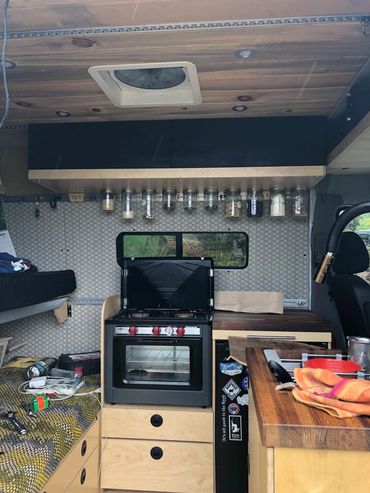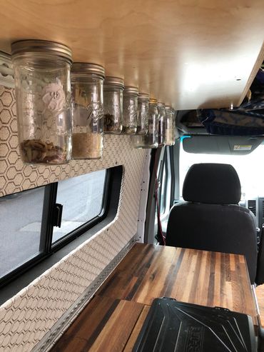 I have been living in her while building her out, and I have gone through many stages. At first it was "stuff the van and go."