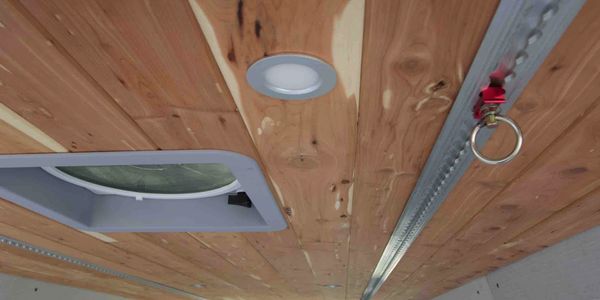 At 3/8 thick, it's light as ever and the smell is fantastic. L-track gives it aesthetic contrast and lets you anchor anything in: Cabinets, hammocks, on the fly tie downs for cargo.