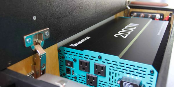 -2000W Pure sine wave inverter, wired to both sides of the van, 8 Amp and 20 Amp outlet.